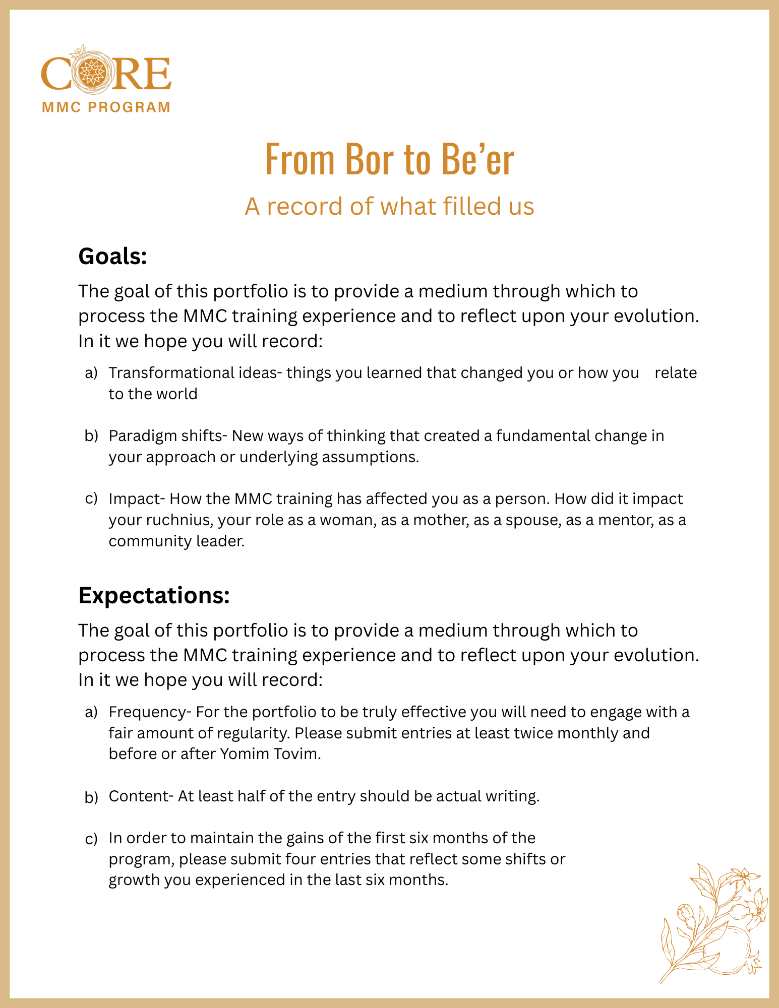 She is also a Core MMC (Mashpia Mentor Counselor), offering emotional and spiritual support to women navigating life’s challenges through a Torah lens.