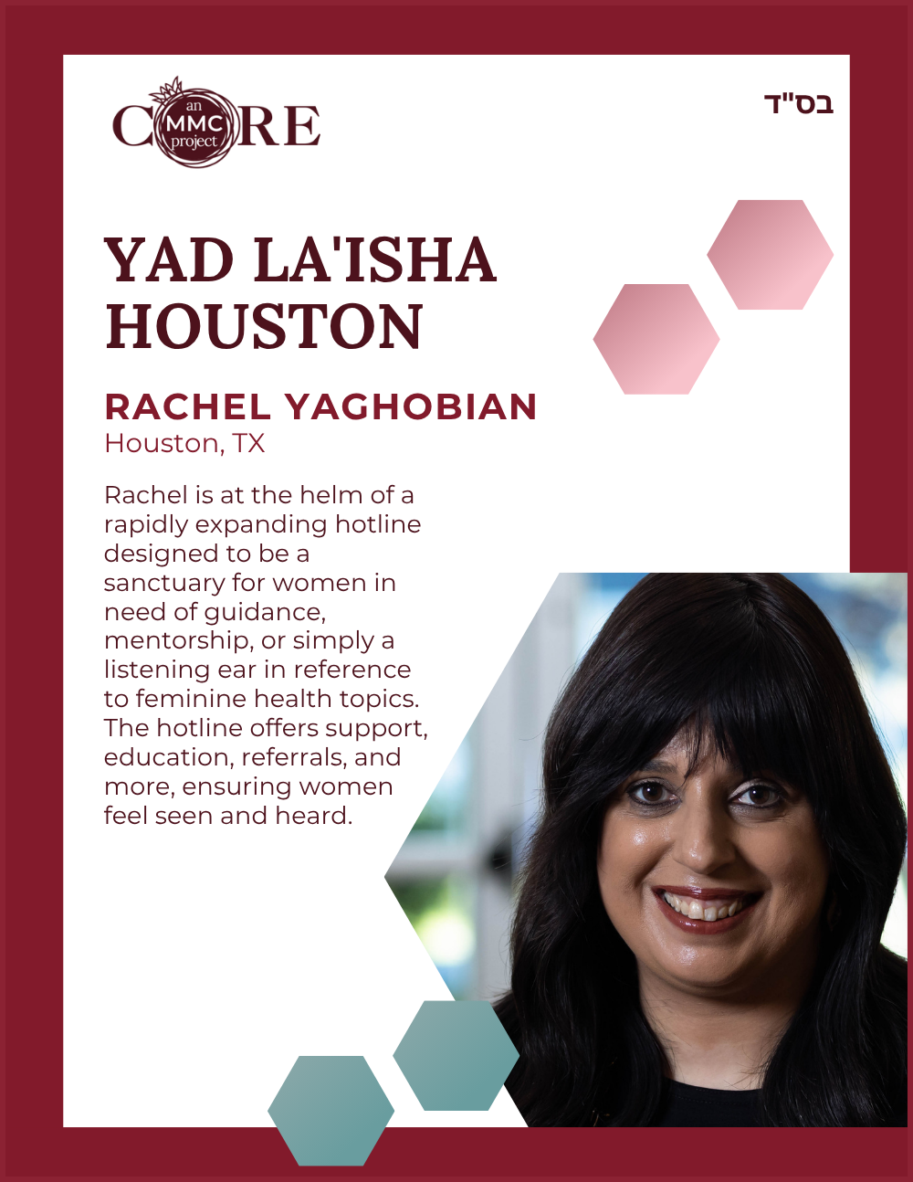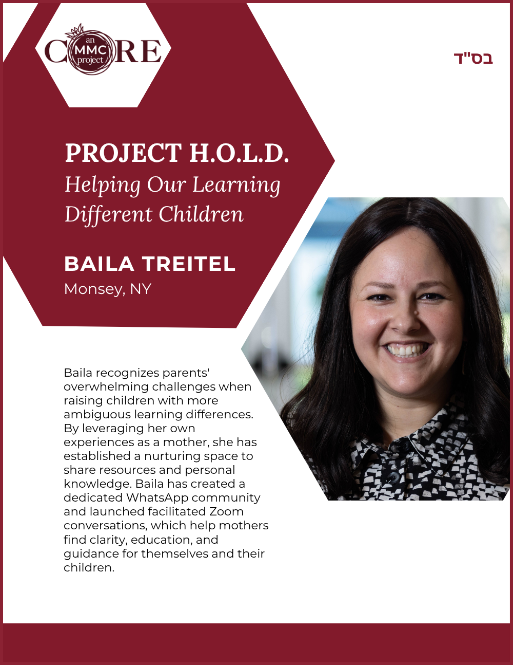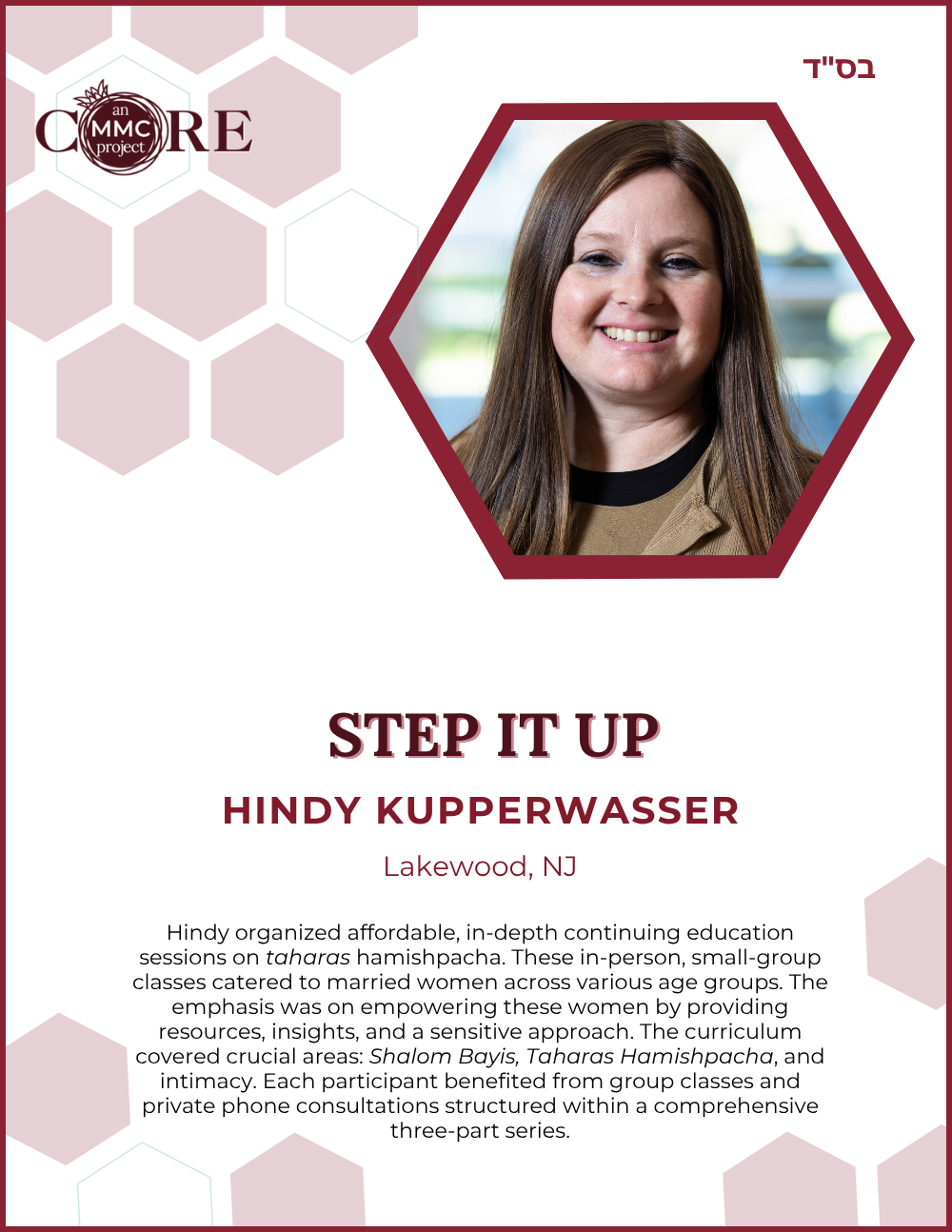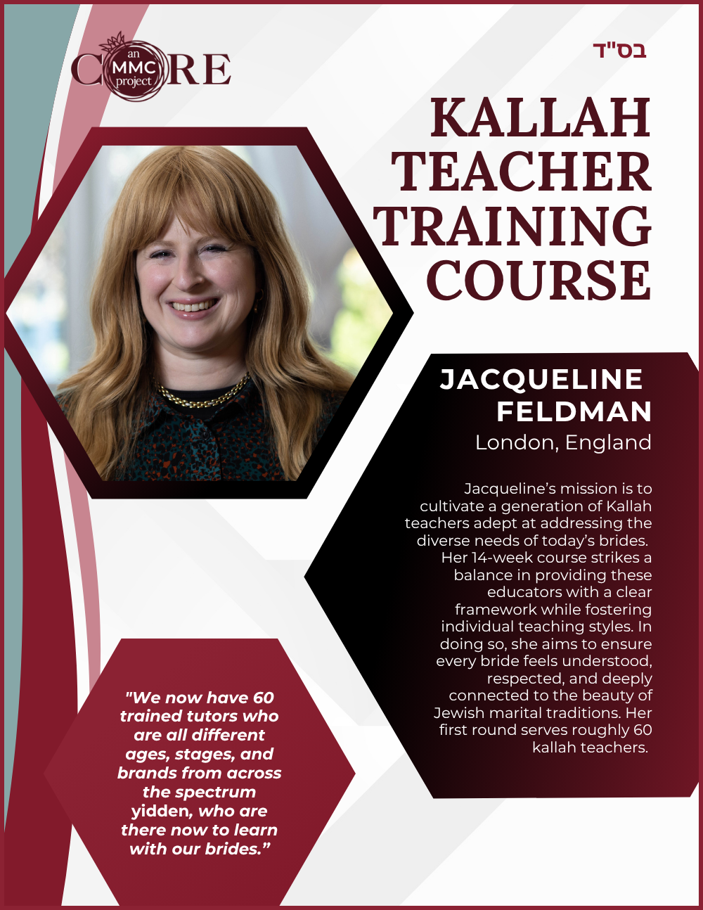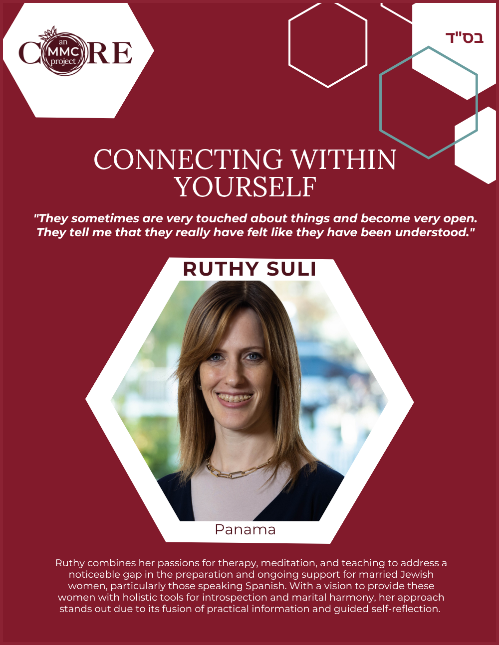 She is also a Core MMC (Mashpia Mentor Counselor), offering emotional and spiritual support to women navigating life’s challenges through a Torah lens.